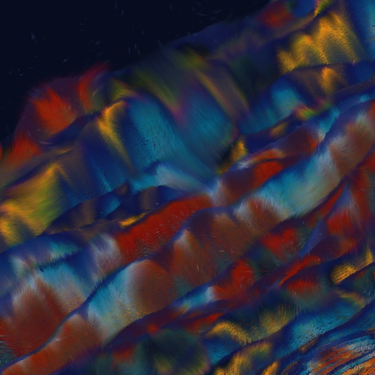 Entirely crafted through code, the waves in "Eternal Tides" transcend mere replication of oceanic movements; they are imbued with vibrant, evolving colors and patterns that echo the dynamic interplay of light upon the waters. Time plays a critical role in shaping the visual narrative, with a shader gradually altering hues to create a time-lapse effect reminiscent of polar stratospheric clouds and light dispersion in water. Each piece invites viewers to pause and observe the process that creates the artwork, where light, water, and form converge to narrate the ebb and flow of life’s experiences.